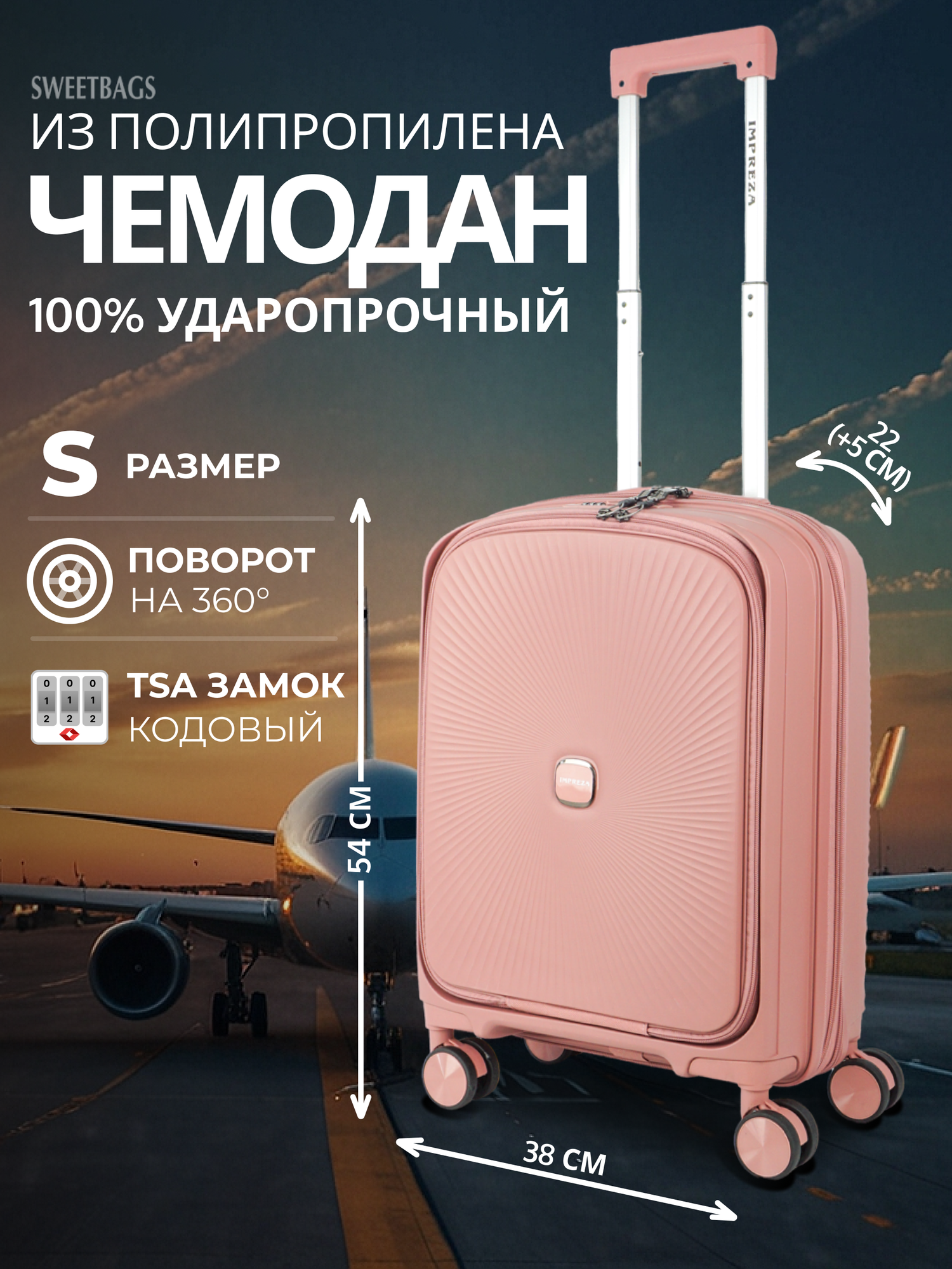 Купить Чемодан Sweetbags маленький (ручная кладь) из полипропилена с расширением на 4-х колесах с TSA замком (Insight) чайная роза S