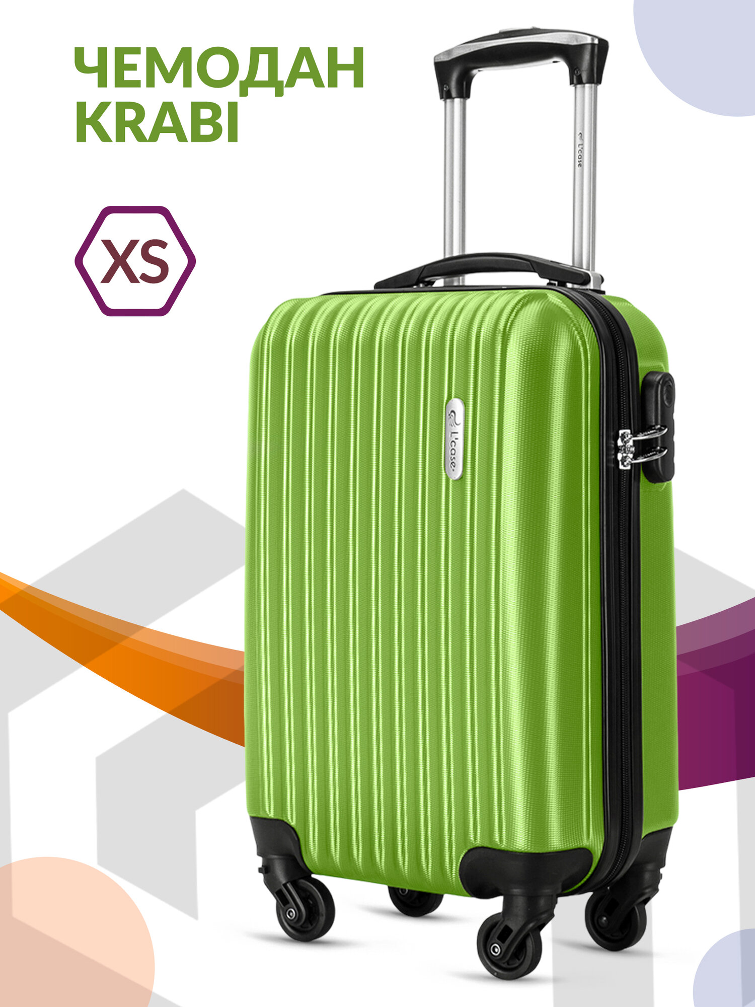 Чемодан на колесах ручная кладь L case Krabi, Светло-зеленый. Маленький S, АВС пластик. Дорожный чемодан на колесиках для путешествий и поездок.