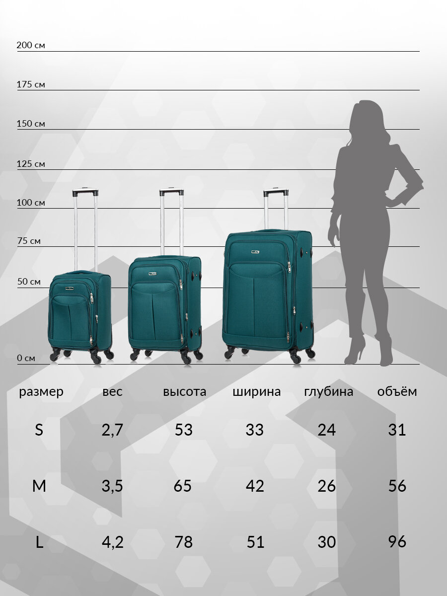 Купить Чемодан на колесах M средний, зеленый - Чемодан тканевый, семейный Lcase