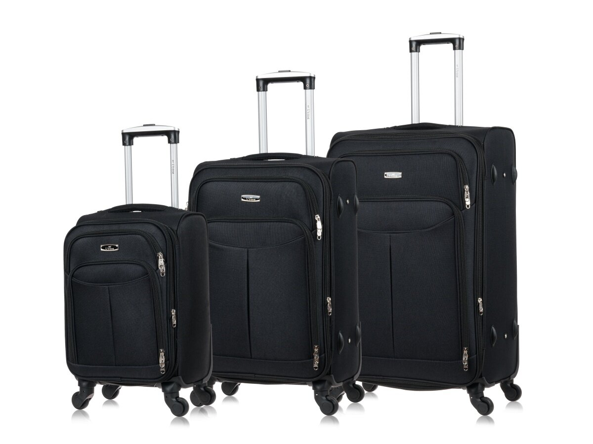 Чемодан на колесах Lcase AMSTERDAM, Черный. Средний размер М, тканевый, 64 см, 75 л. Дорожный чемодан на колесиках для путешествий и поездок.