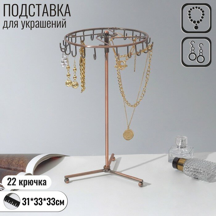 Queen fair Подставка для украшений «Вешалка», 23 крючка, 31×33 см, цвет медный