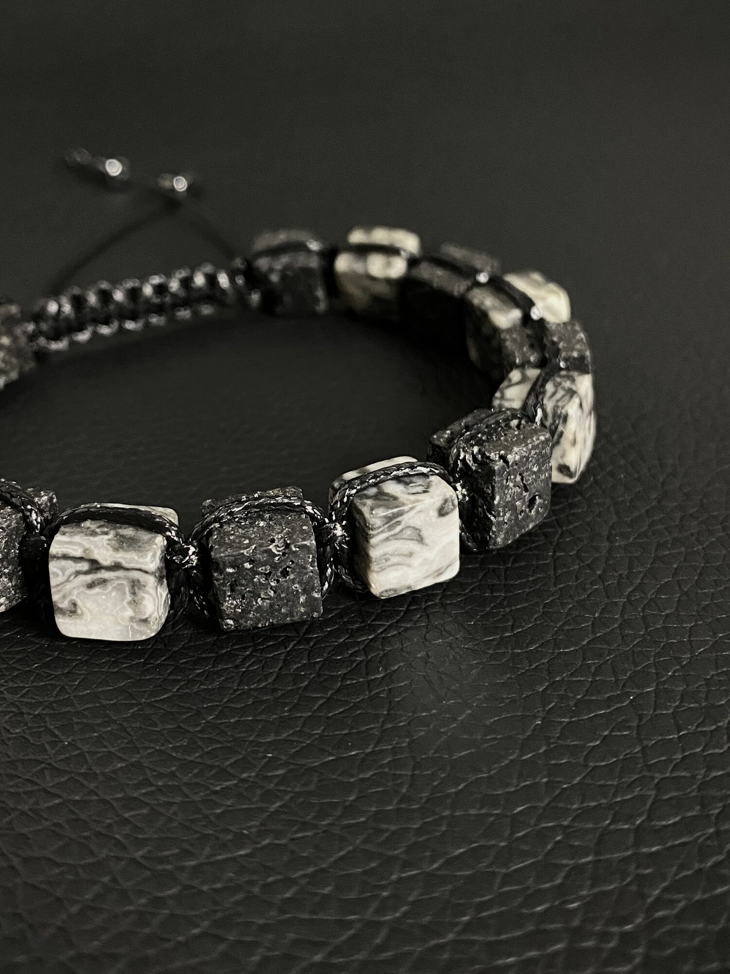 Браслет куб квадрат из натуральных камней мужской яшма и лава / плетеный шамбала