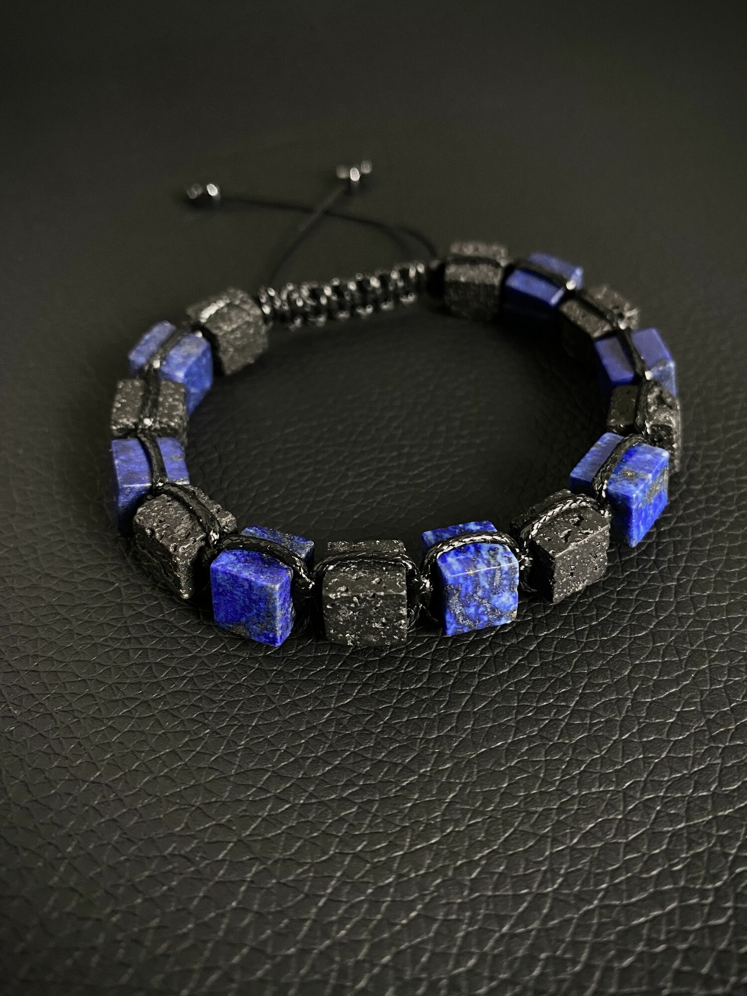 Браслет из натуральных камней лазурит и лава куб квадрат 18-22см