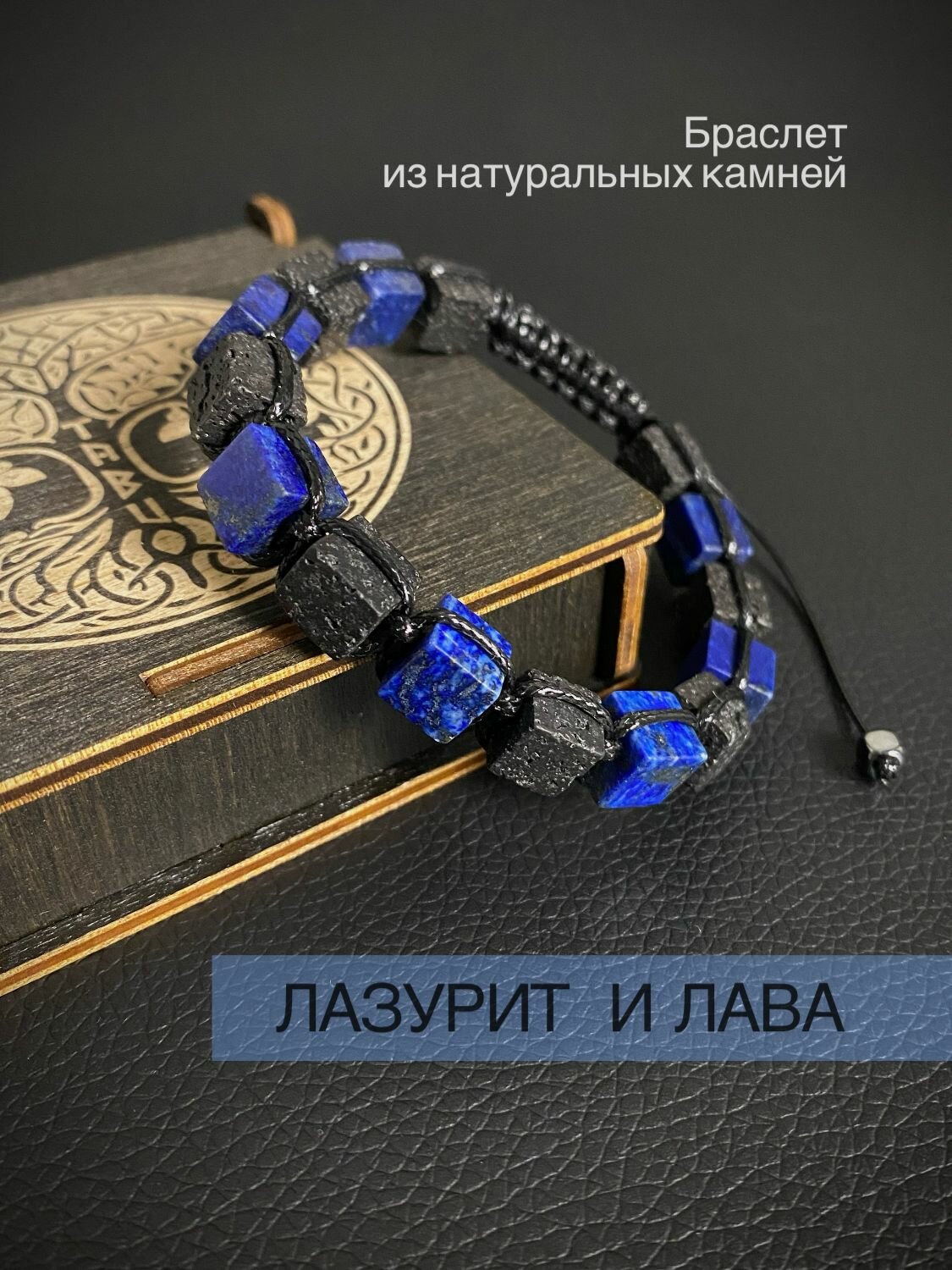 Браслет из натуральных камней лазурит и лава куб квадрат мужской в подарочной упаковке