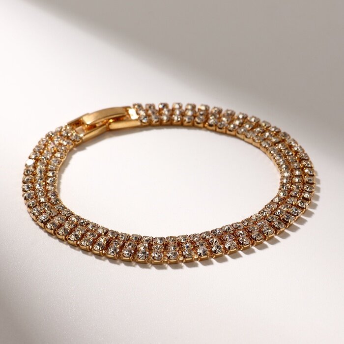Купить Браслет со стразами "Лёд" элегантность, 3 ряда, цвет белый в золоте,L=18см 2757383
