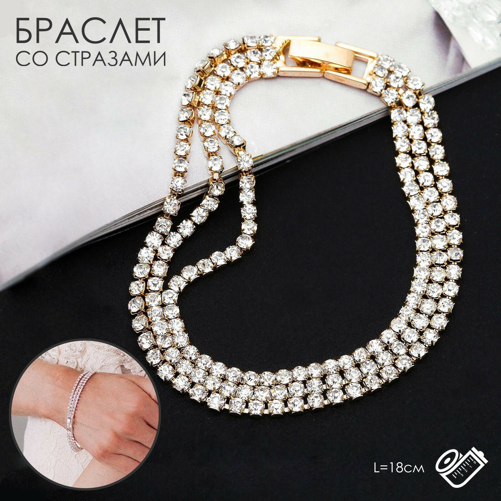 | Комплектация | Браслет со стразами "Лёд" элегантность, 3 ряда, цвет белый в золоте,L 18см |