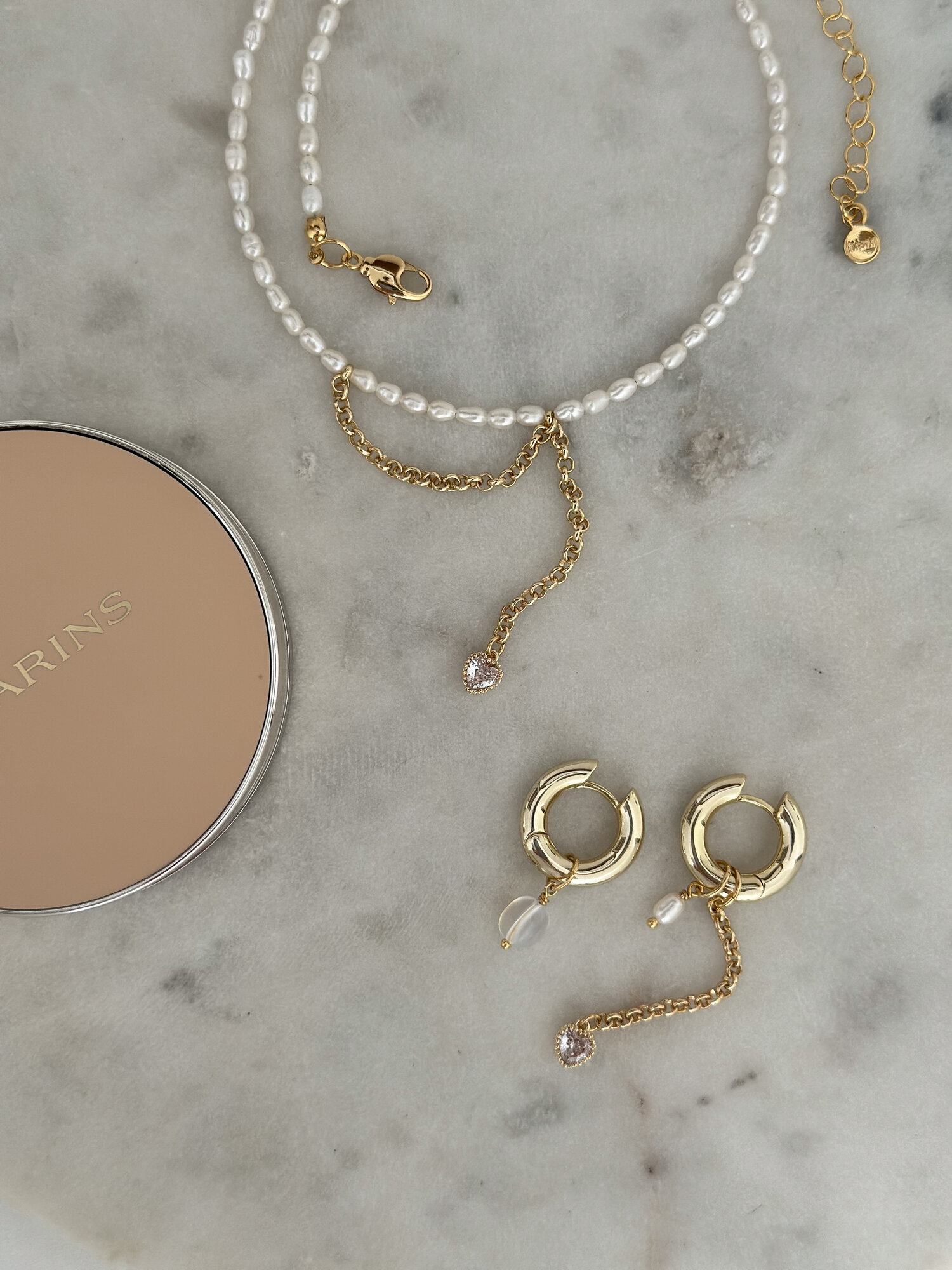 Колье из натурального жемчуга и цепи с подвеской зайчиком Bunny