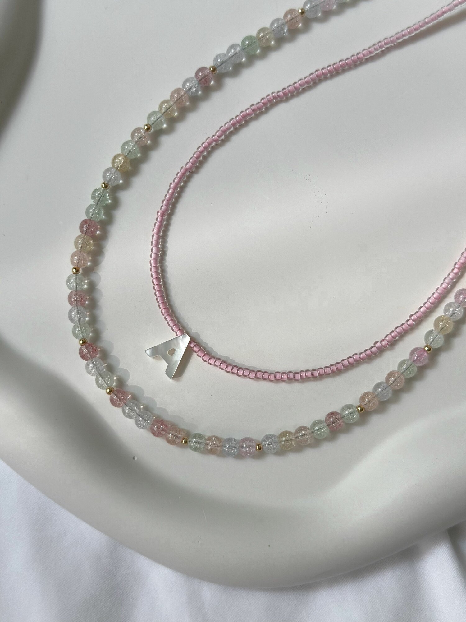 Колье из натурального камня 43 см, Чокер Ocean на шею с двумя цепями, перламутром в ювелирной огранке с покрытием золота 18 карат, Украшение с подвеской в виде стеклянного сердца, Подарок для женщин, девушек, MOON SOUL