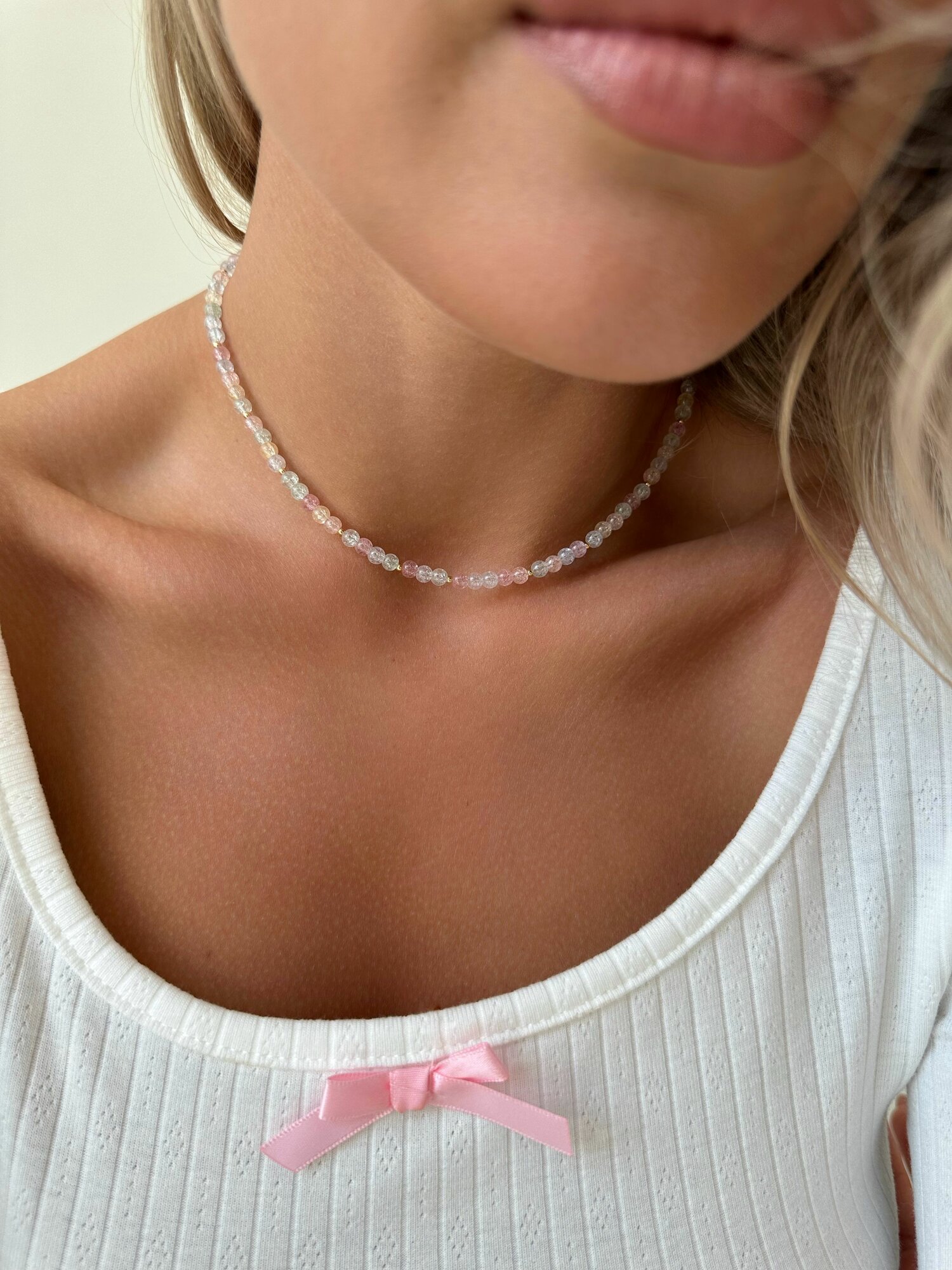 Чокер из натурального камня, Регулируемый 39 см (+4), Колье Avrora на шею из жемчуга, Украшение с подвеской в форме сердца из ювелирного стекла на цепочке, Подарок для женщин, девушек, MOON SOUL