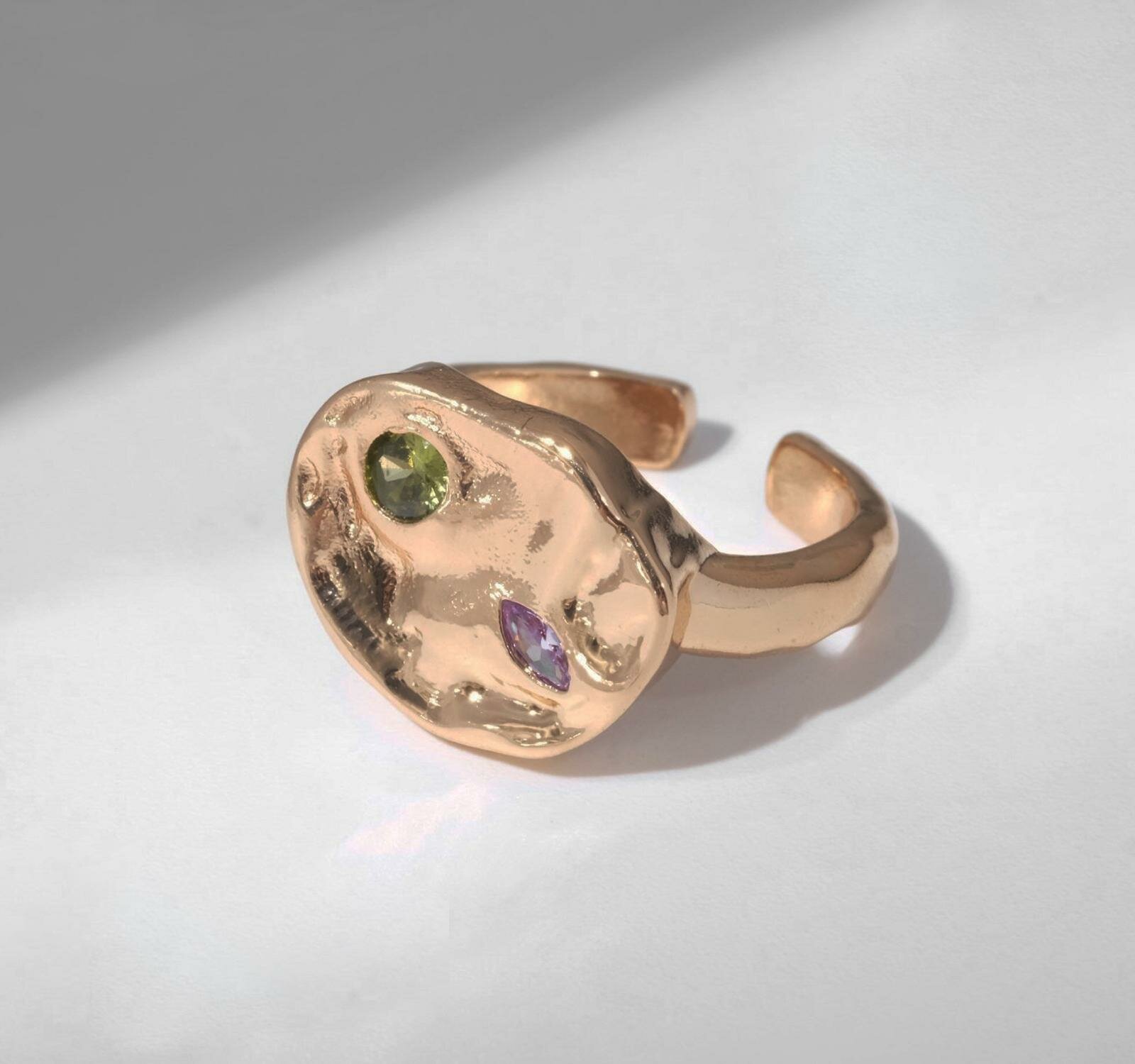 Кольцо "Мятые линии", цвет фиолетово-розовый в золоте, безразмерное 9679552 интересное: