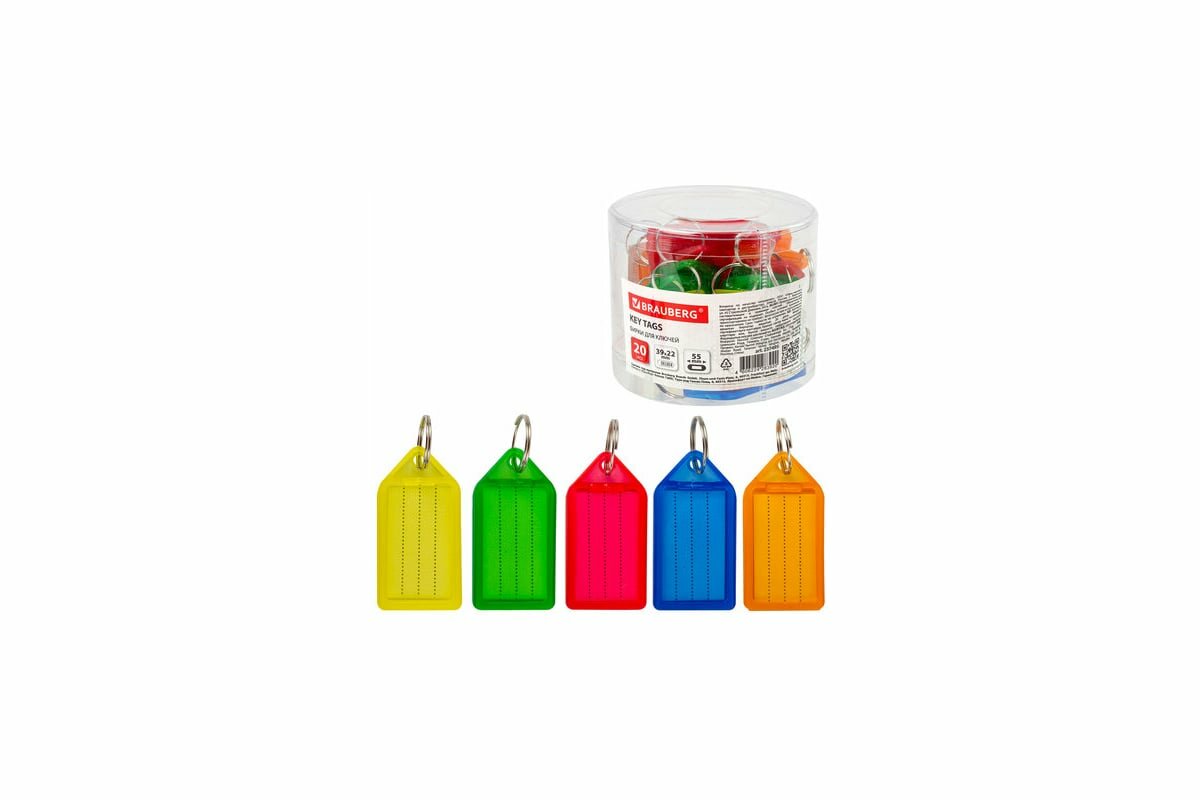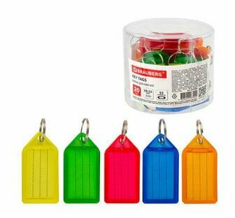 Бирка для ключей BRAUBERG, 20 шт., ассорти
