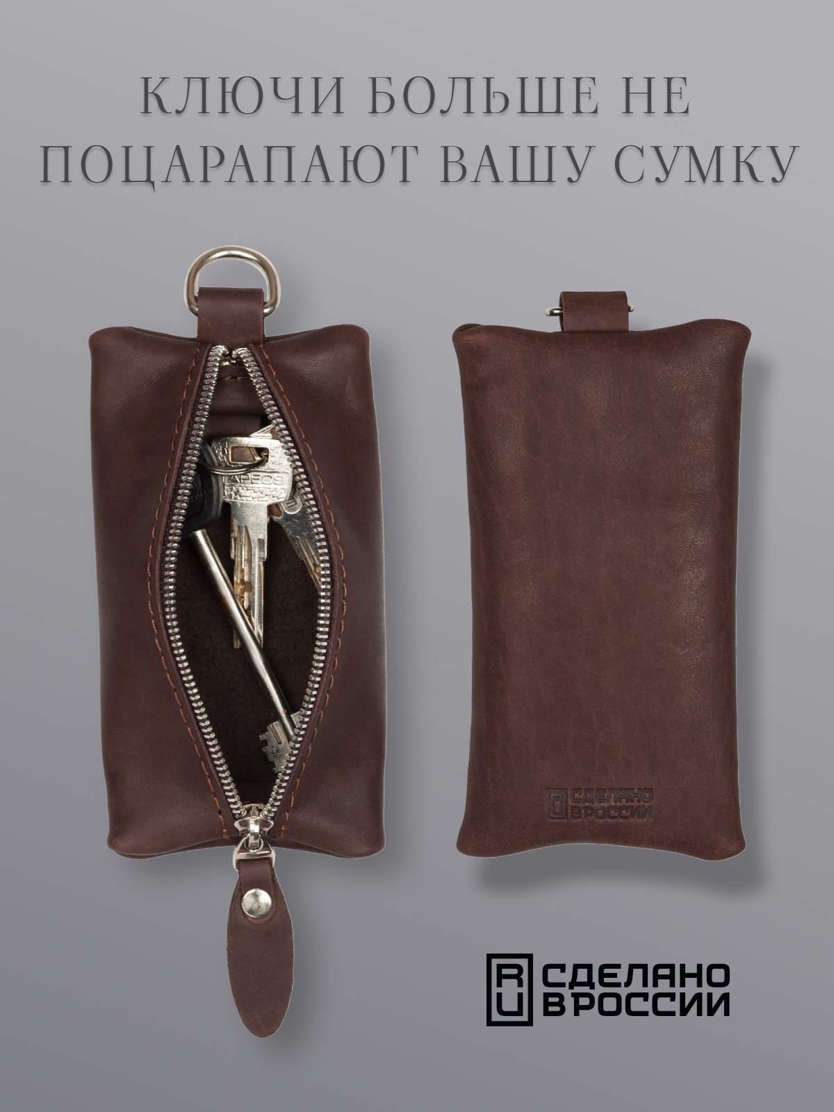 Ключница кожаная карманная для ключей на молнии мужская и женская интересное: