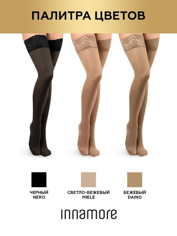 Чулки INNAMORE Flirt 20 ден, daino, 3 размер, с кружевной резинкой