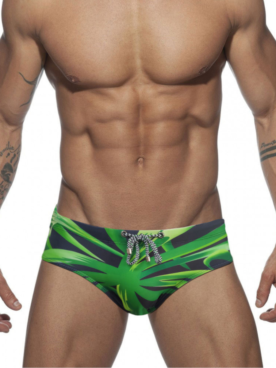 Купить Черные мужские плавки с зеленым растительным рисунком (Размер: L) (Цвет: черный с зеленым)