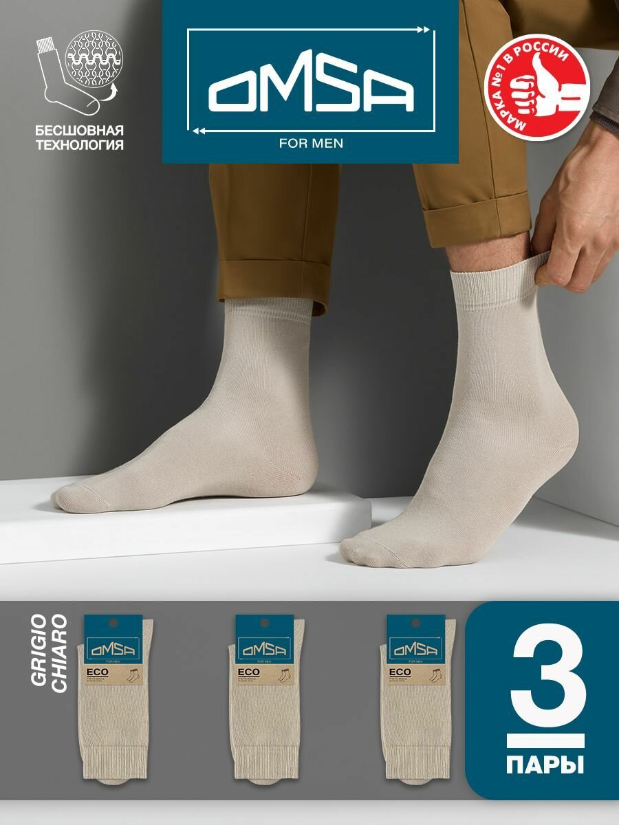 Носки мужские OMSA ECO 401, высокие, комплект 3 шт, Цвет Grigio Chiaro, Размер 39-41 (25-27)