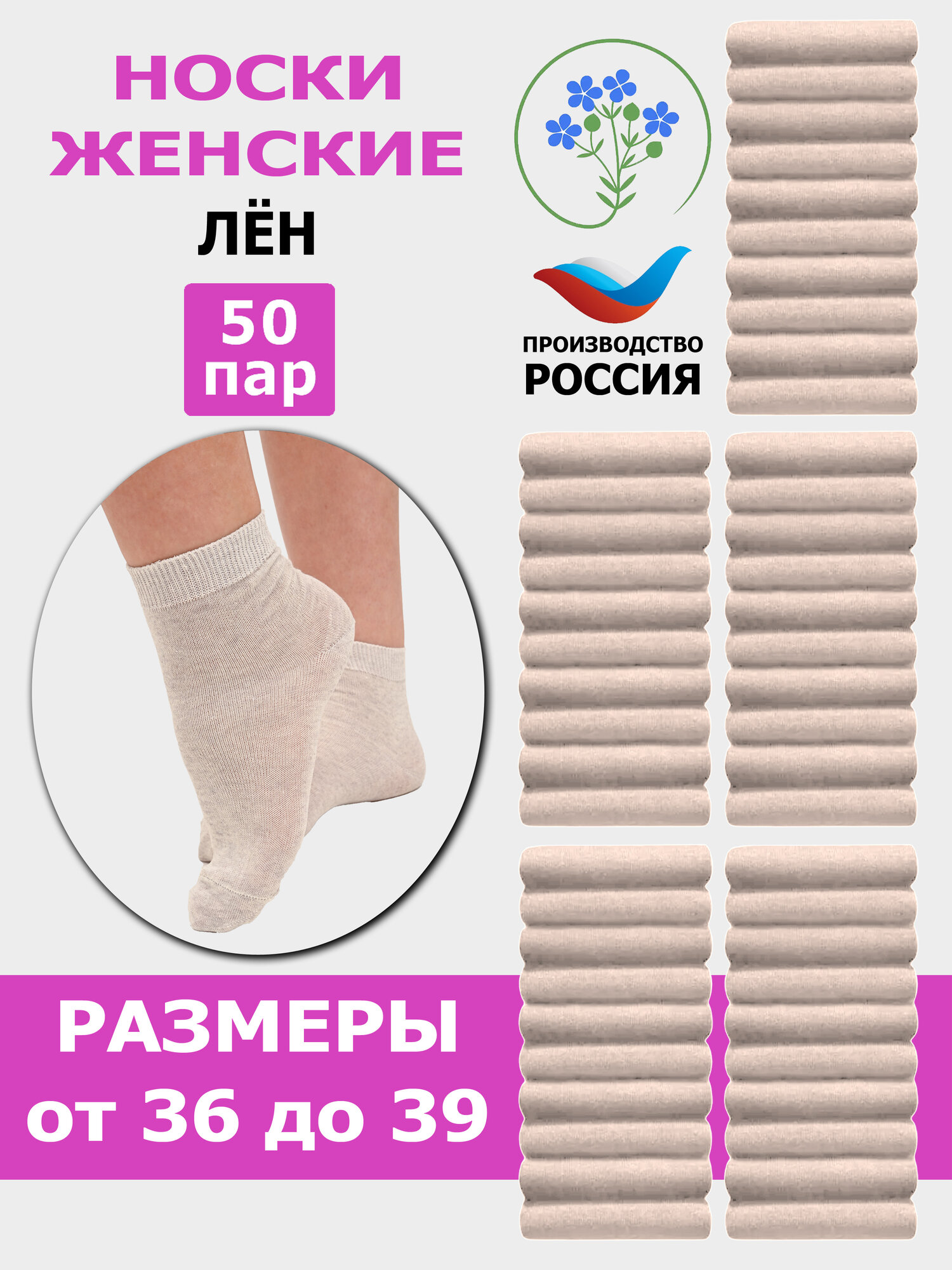Ж3 Комплект женских носков караван, лён - 50 пар 25 Светло-серый
