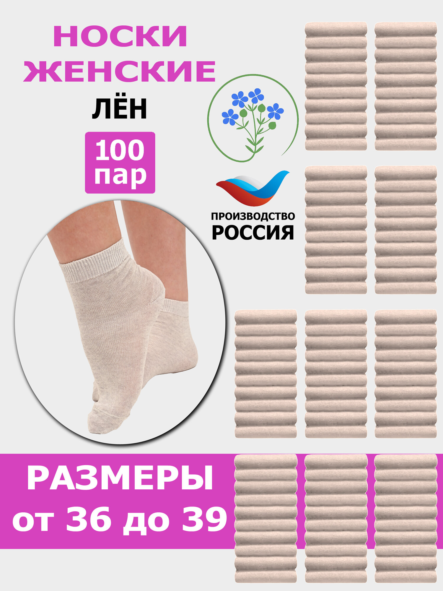 СохранитьЖ3 Комплект женских носков караван, лён - 100 пар 23 Светло-серый интересное: