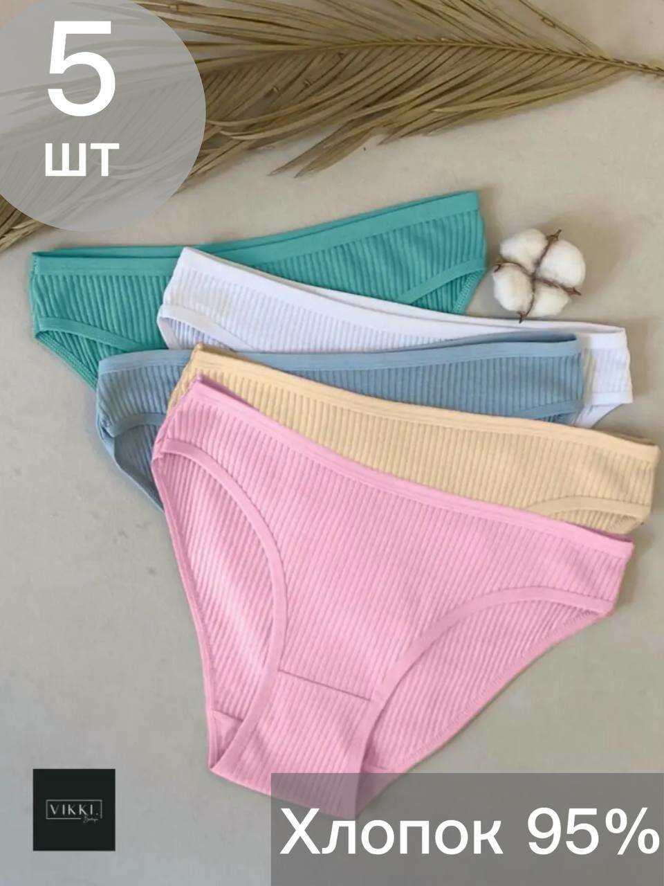 Комплект VIKKI. трусы женские слипы 5 шт. 42-44, Цвет: желтый, розовый, бирюзовый, белый, голубой
