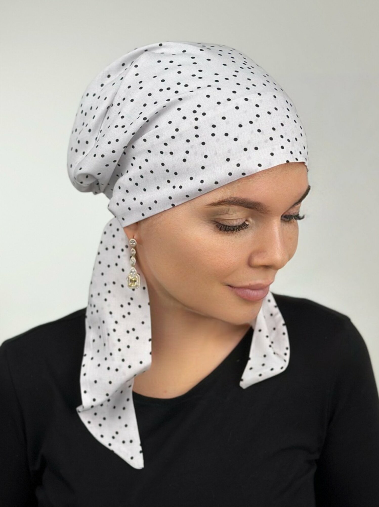 Чалма женская после химиотерапии чалма Mишель Черный горошек интересное: