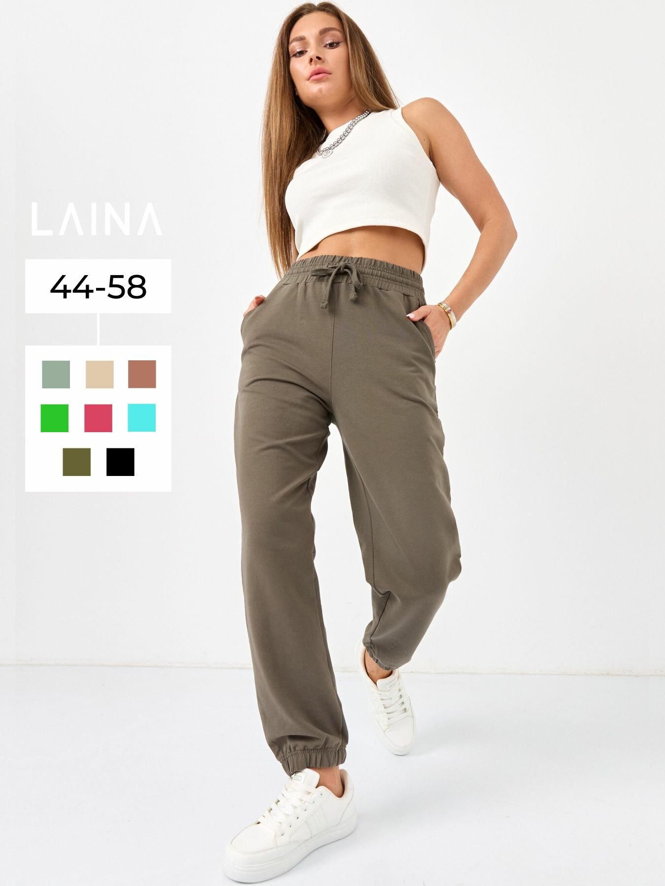 Брюки джоггеры Laina джоггеры весеняя коллекция, размер 54, хаки