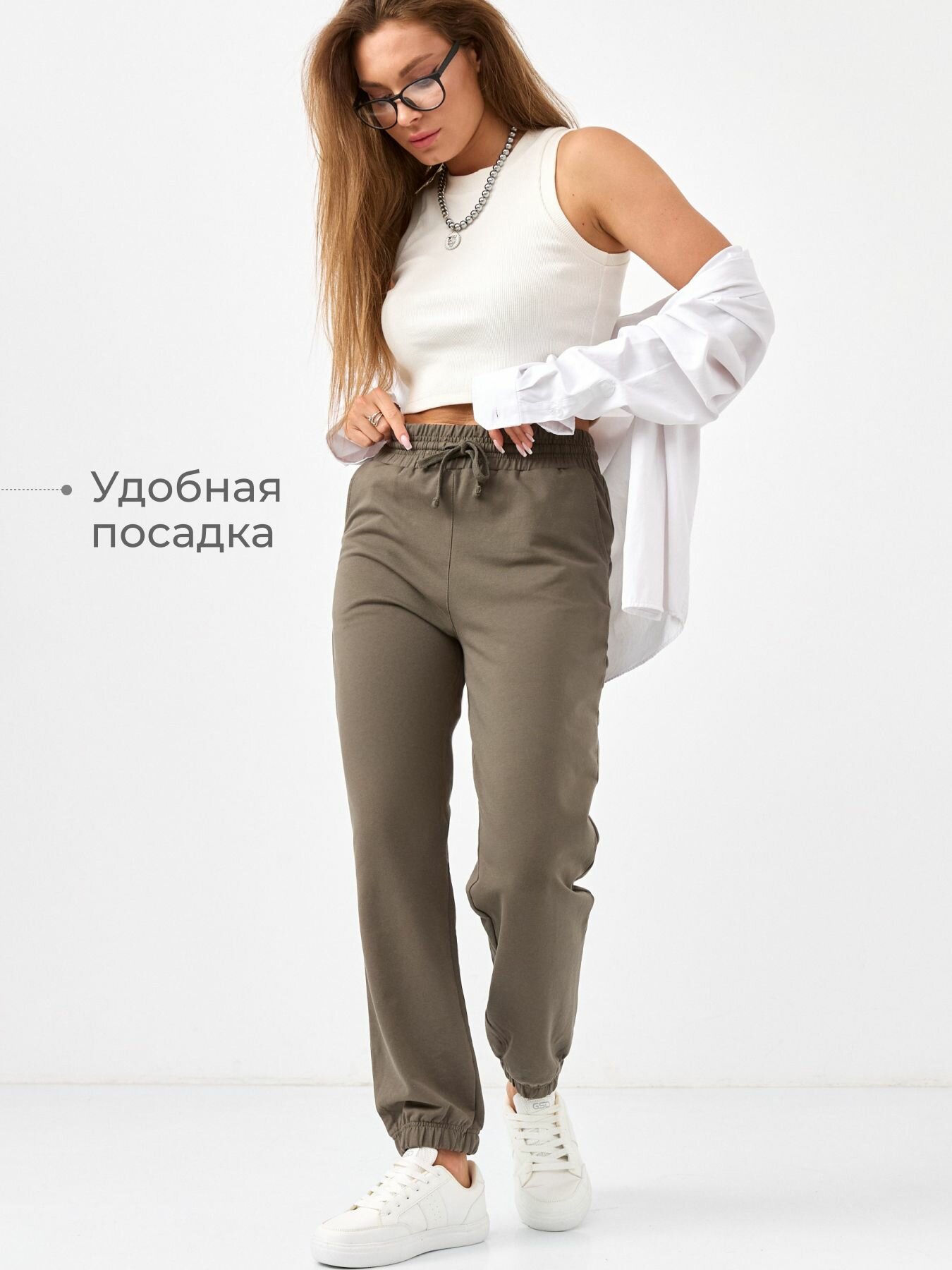 Брюки джоггеры Laina джоггеры весеняя коллекция, размер 46, хаки