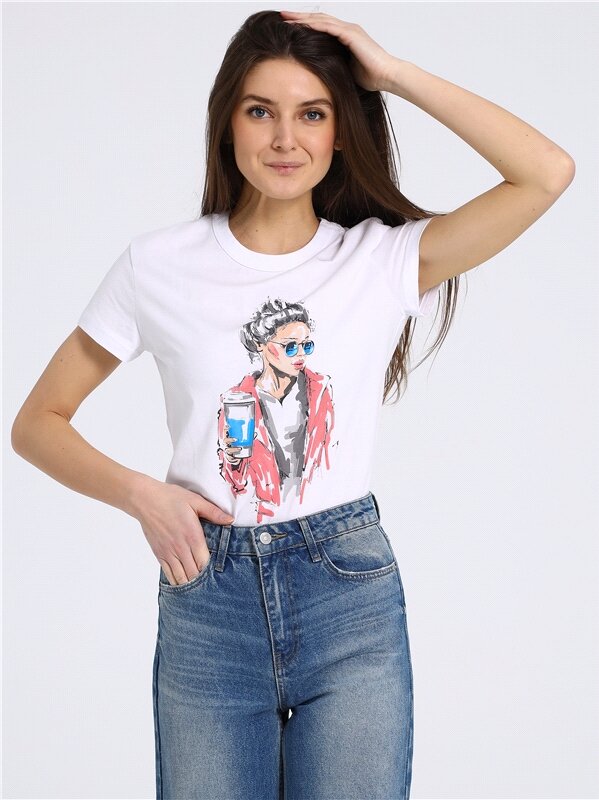 Футболка женская белая с принтом хлопок 100% Апрель 1ЖДФК2657001/ 1190/31/*/3355/*/*/* белый 100-164