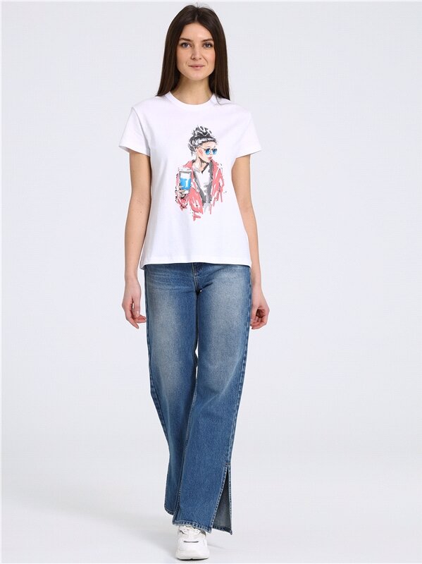 Футболка женская белая с принтом хлопок 100% Апрель 1ЖДФК2657001/1190/31/*/3364/*/*/* белый 84-164
