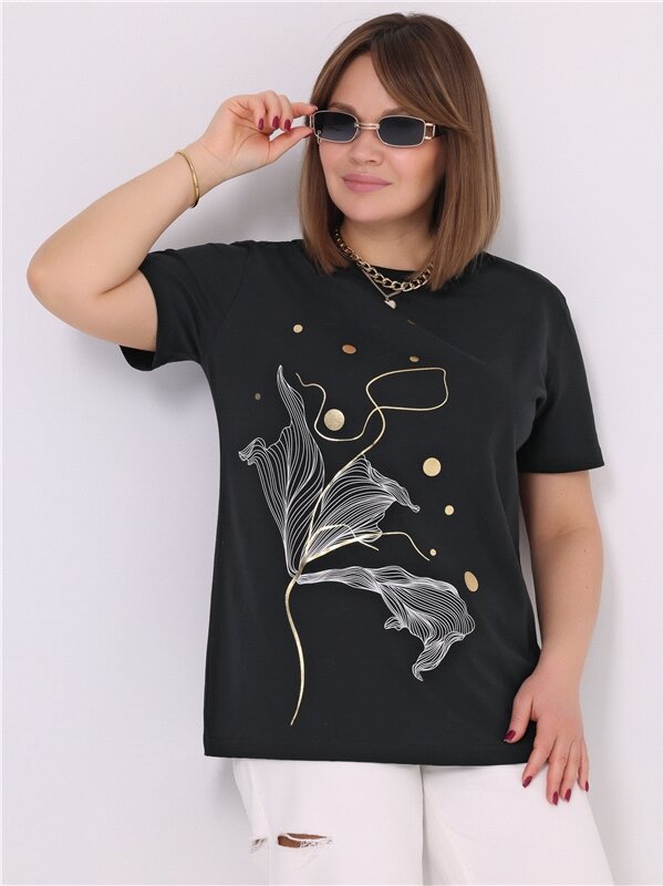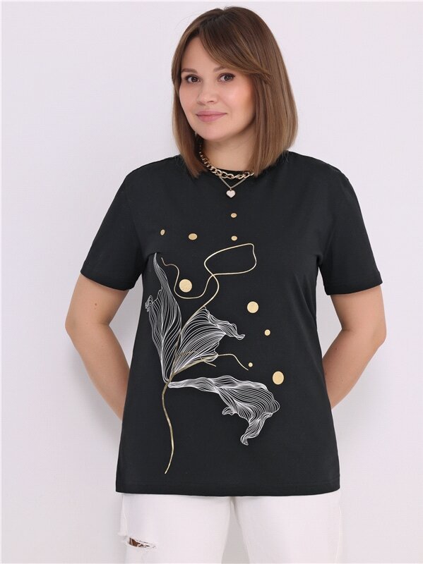 Футболка женская черная с принтом хлопок 100% Апрель 1ЖДФК3298001/1190/599/*/3436/*/*/* черный,мультиколор 104-164