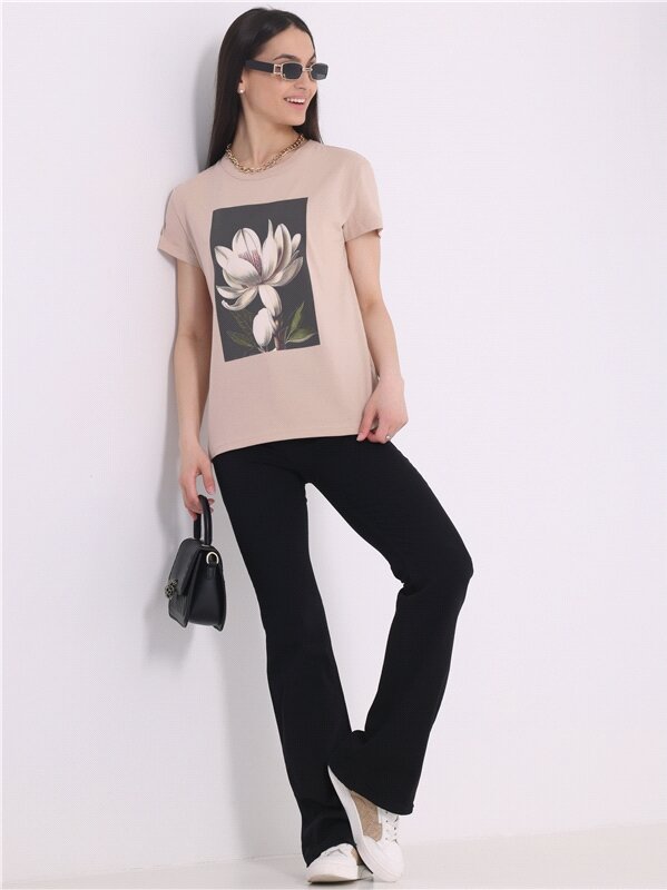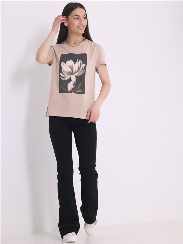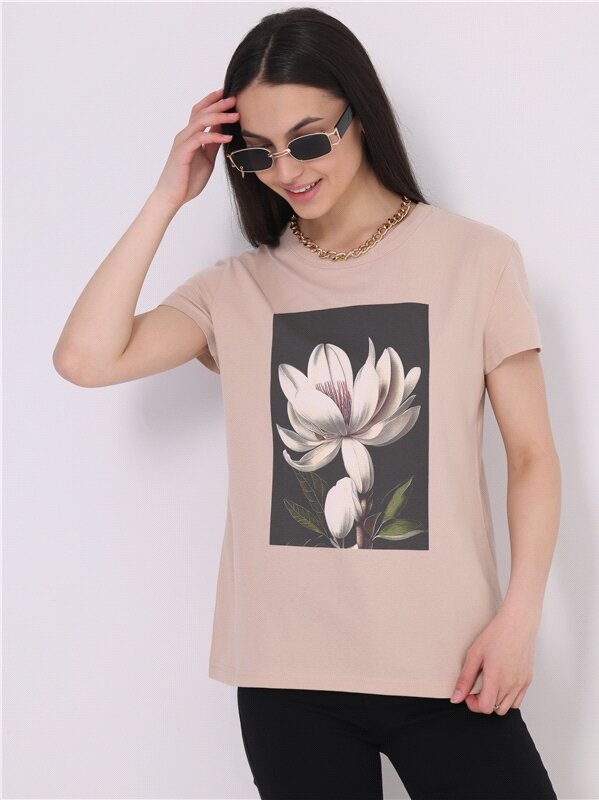 Купить Футболка женская с принтом хлопок Апрель 1ЖДФК2657001/1190/2002/*/3441/*/*/* бежевый 96-164