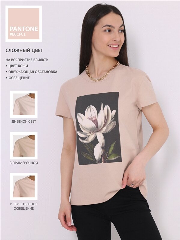 Футболка женская с принтом хлопок Апрель 1ЖДФК2657001/1190/2002/*/3441/*/*/* бежевый 84-164