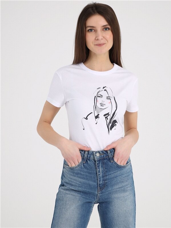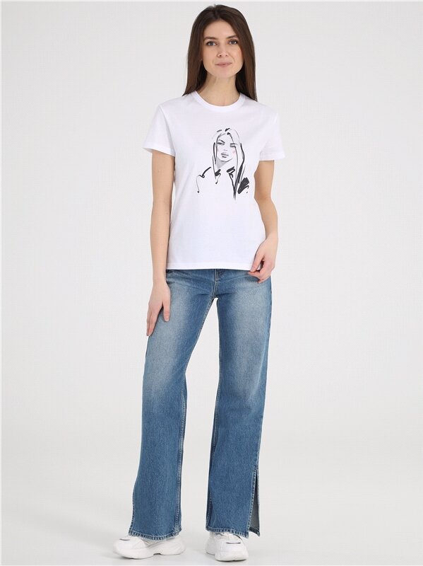 Футболка женская белая с принтом хлопок 100% Апрель 1ЖДФК2657001/1190/31/*/2732/*/*/*/1 белый 96-164
