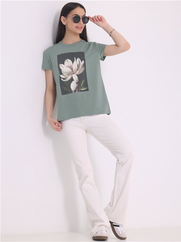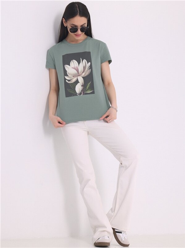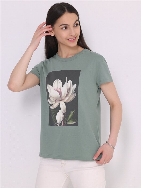 Купить Футболка женская с принтом хлопок Апрель 1ЖДФК2657001/1190/2027/*/3441/*/*/* зеленый 88-164