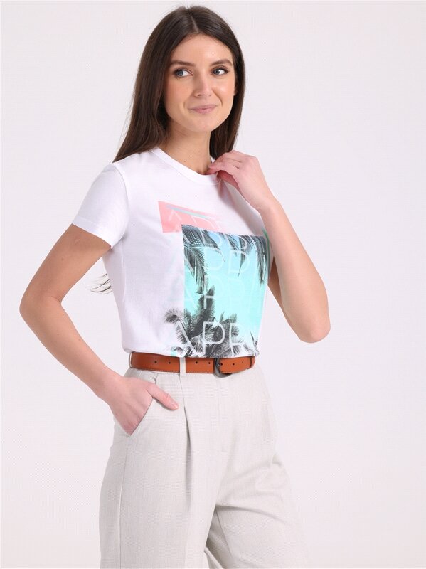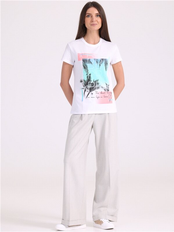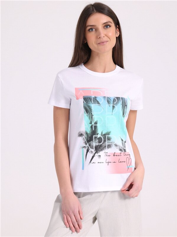 Футболка женская белая с принтом хлопок 100% Апрель 1ЖДФК3350001/1190/31/*/3086/*/*/* белый,бежевый 96-164