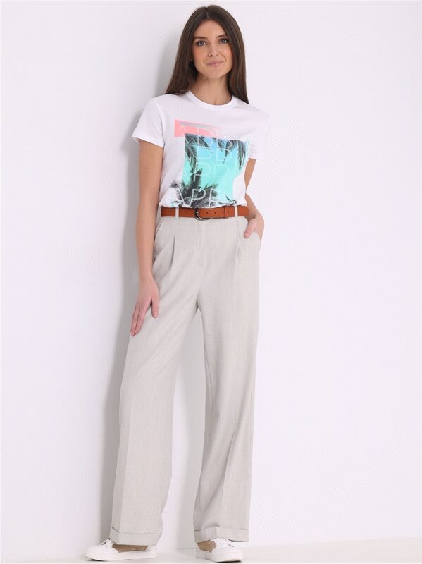 Футболка женская с принтом хлопок Апрель 1ЖДФК2657001/1190/2002/*/3441/*/*/* бежевый,серый,белый 96-164