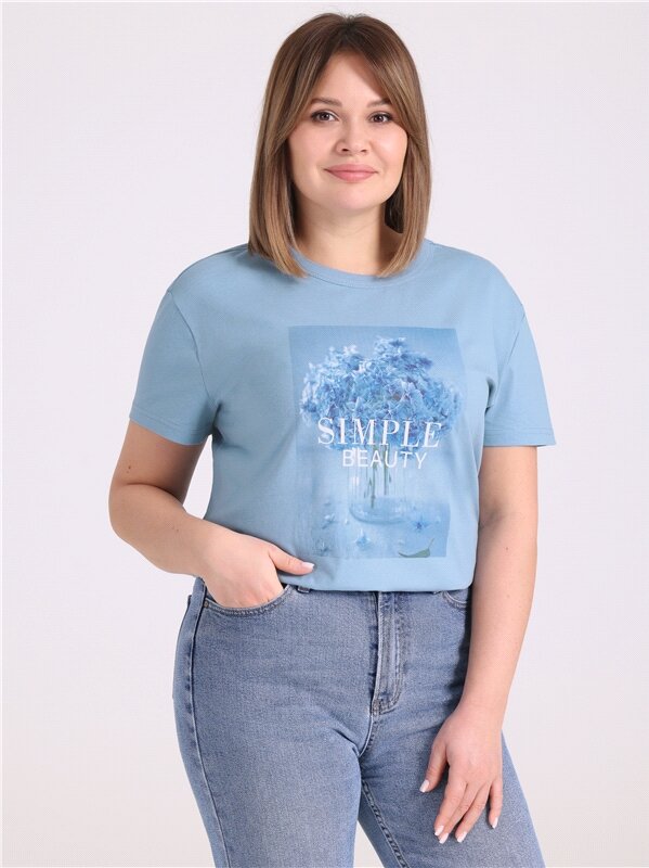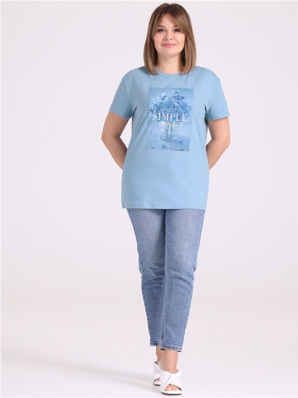 Футболка женская с принтом хлопок Апрель 1ЖДФК3965001/1354/2601/*/3424/*/*/* голубой 84-164