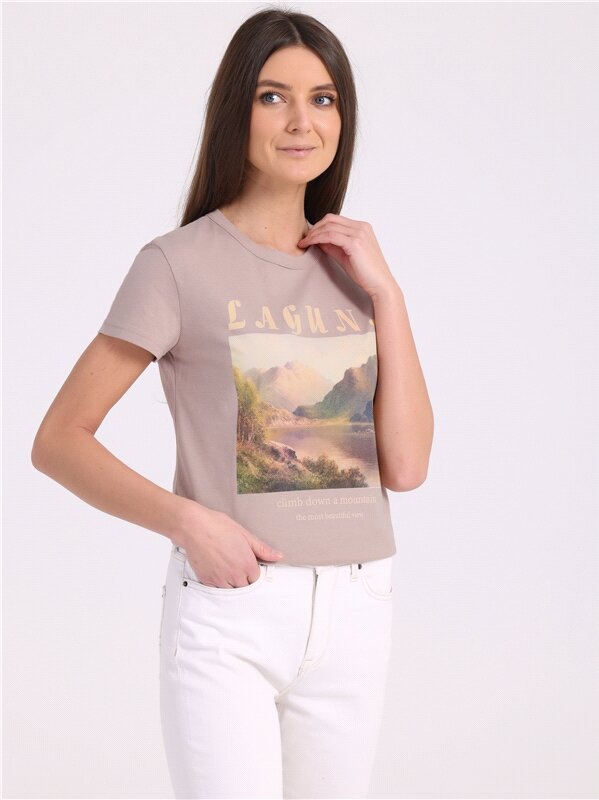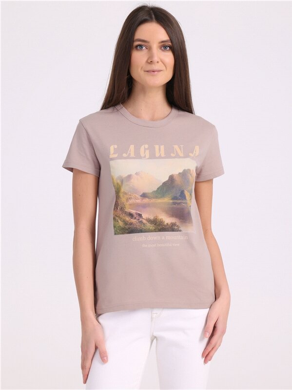 Футболка женская с принтом хлопок 100% Апрель 1ЖДФК3965001/1354/2002/*/3437/*/*/* бежевый,коричневый,черный 96-164