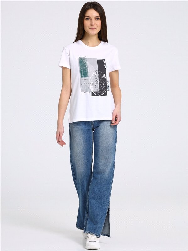 Футболка женская белая с принтом хлопок 100% Апрель 1ЖДФК2657001/1190/31/*/3364/*/*/* белый 84-164