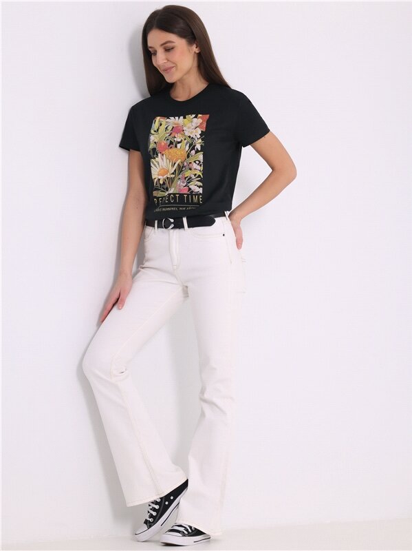 Футболка женская черная с принтом хлопок 100% Апрель 1ЖДФК3298001/1190/599/*/3436/*/*/* черный 108-164