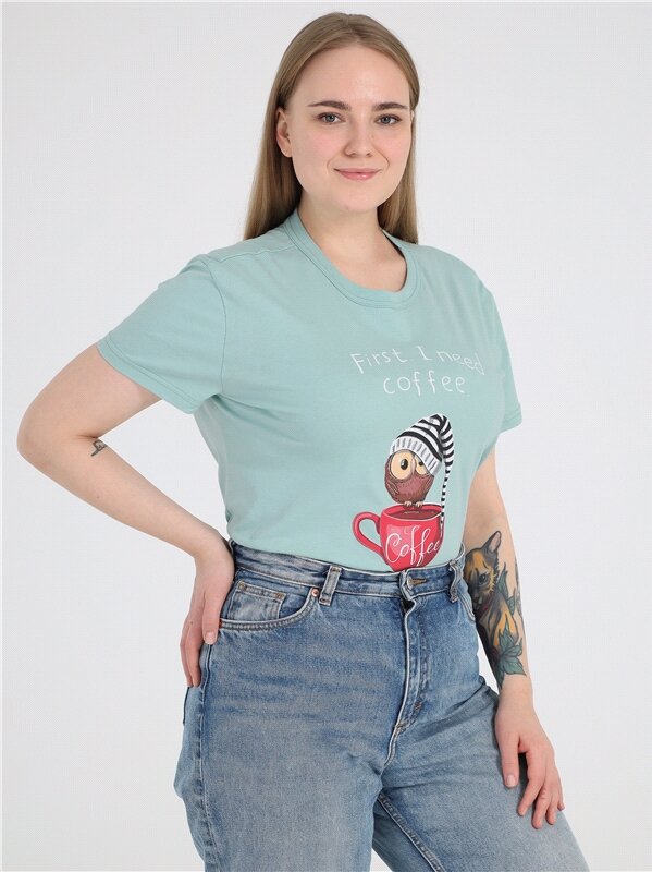Футболка женская с принтом хлопок 100% Апрель 1ЖДФК3350001/1190/2027/*/3337/*/*/* зеленый 96-164