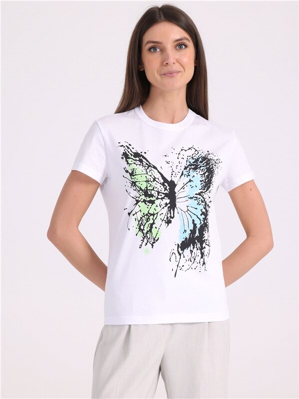 Футболка женская белая с принтом хлопок 100% Апрель 1ЖДФК2657001/1190/31/*/2967/*/*/*/1 белый,мультиколор 100-164