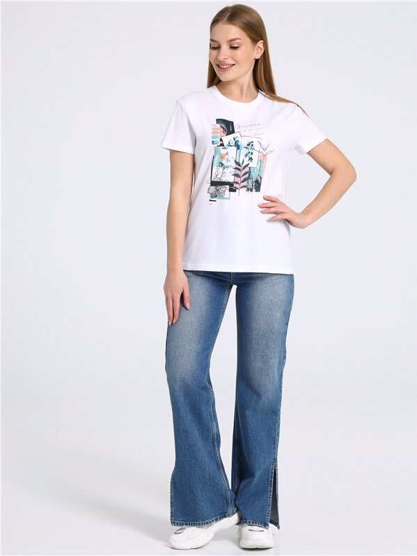 Футболка женская белая с принтом хлопок 100% Апрель 1ЖДФК2657001/1190/31/*/2967/*/*/*/1 белый,мультиколор 100-164