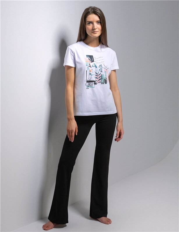 Футболка женская белая с принтом хлопок 100% Апрель 1ЖДФК3784001/1190/31/*/3256/*/*/* белый,черный 96-164