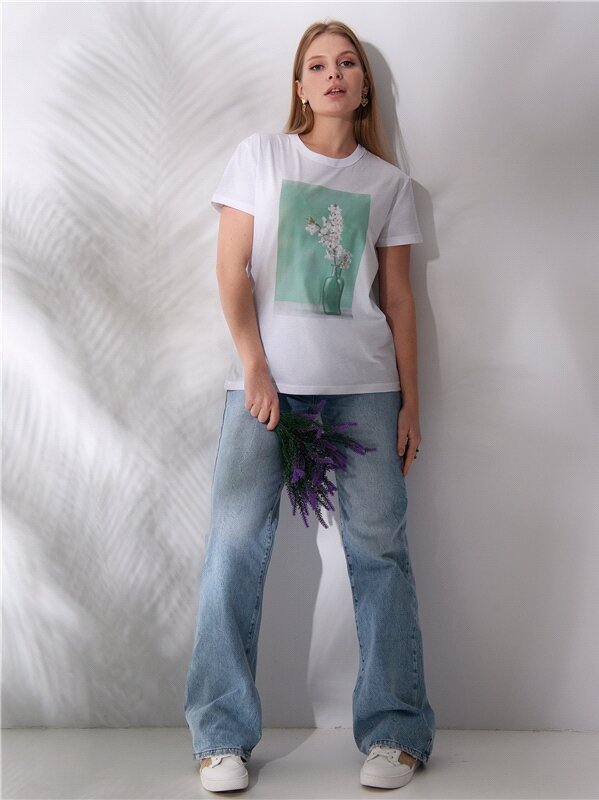 Футболка женская белая с принтом хлопок 100% Апрель 1ЖДФК3350001/1190/31/*/2986/*/*/* белый 84-164