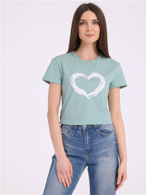 Футболка женская с принтом хлопок 100% Апрель 1ЖДФК3350001/1190/2027/*/3337/*/*/* зеленый 96-164