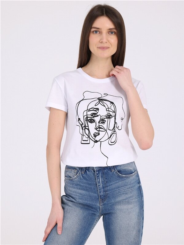 Футболка женская белая с принтом хлопок 100% Апрель 1ЖДФК3350001/ 1190/31/*/3350/*/*/* белый,черный,голубой 96-164