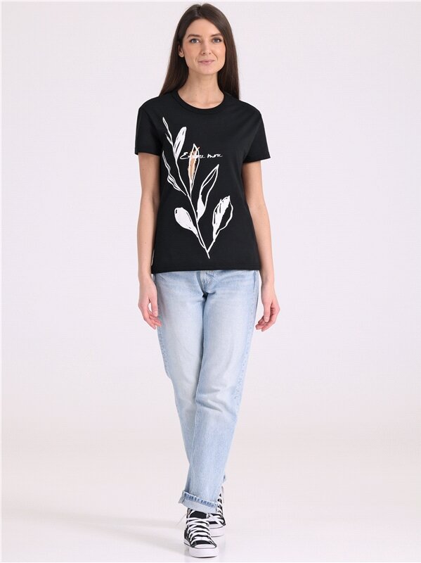 Футболка женская черная с принтом хлопок 100% Апрель 1ЖДФК3784001/1190/599/*/3231/*/*/* черный 84-164