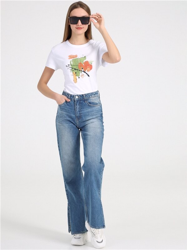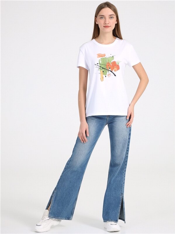 Футболка женская белая с принтом хлопок 100% Апрель 1ЖДФК2657001/1190/31/*/2967/*/*/*/1 белый,мультиколор 100-164