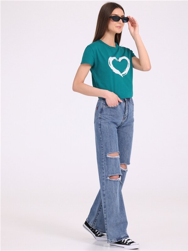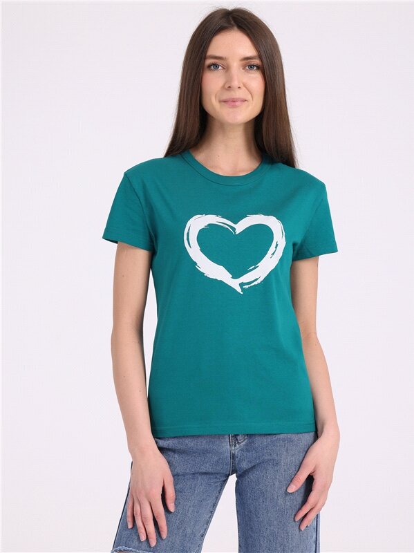 Футболка женская с принтом хлопок 100% Апрель 1ЖДФК3350001/1190/2027/*/3337/*/*/* зеленый 96-164