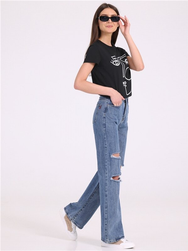 Футболка женская черная с принтом хлопок 100% Апрель 1ЖДФК2657001/1190/599/*/3336/*/*/* черный 100-164