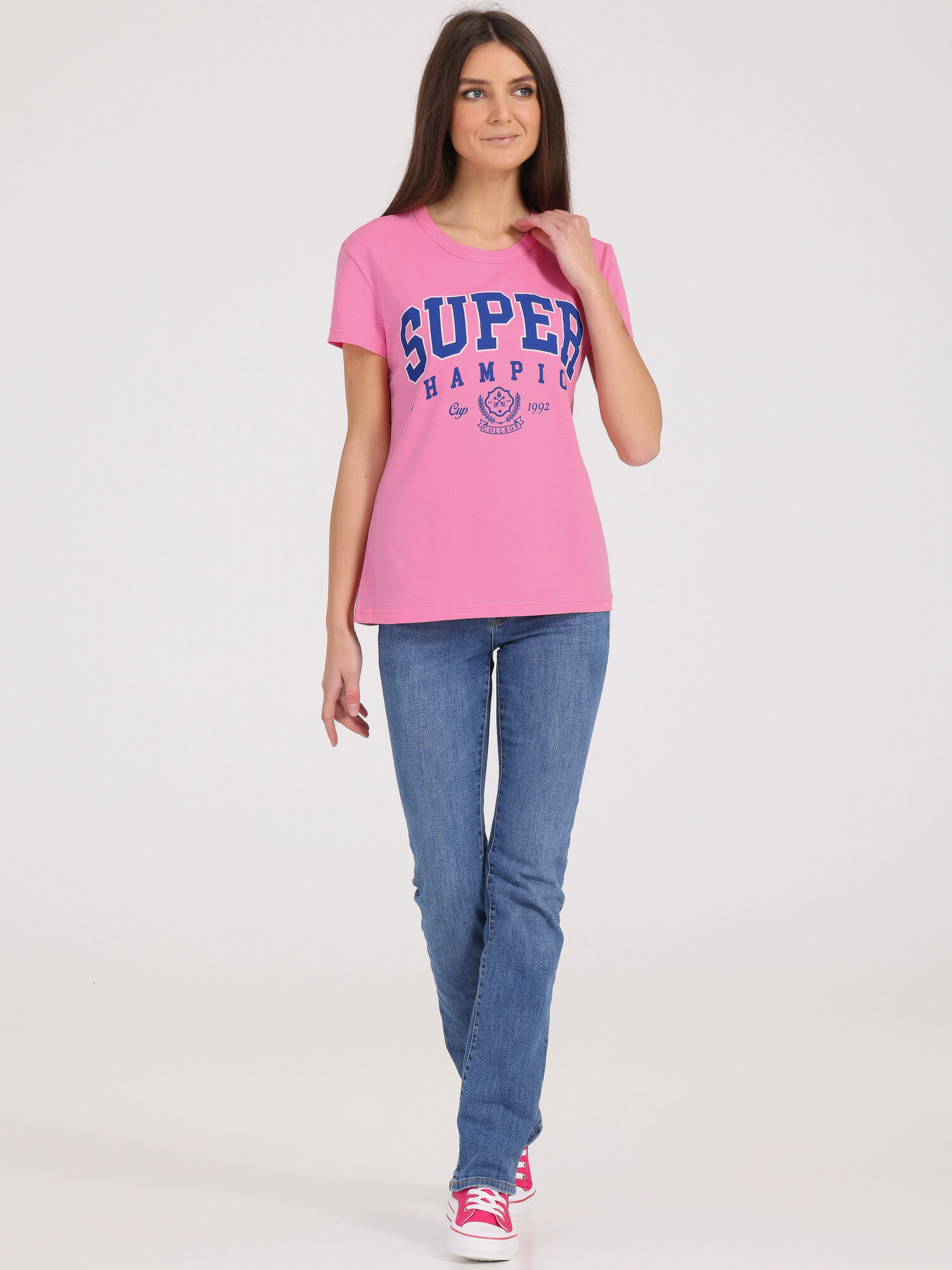 Футболка женская с принтом хлопок 100% Апрель 1ЖДФК4252001/1354/2408/*/2904/*/*/* розовый,красный 100-164